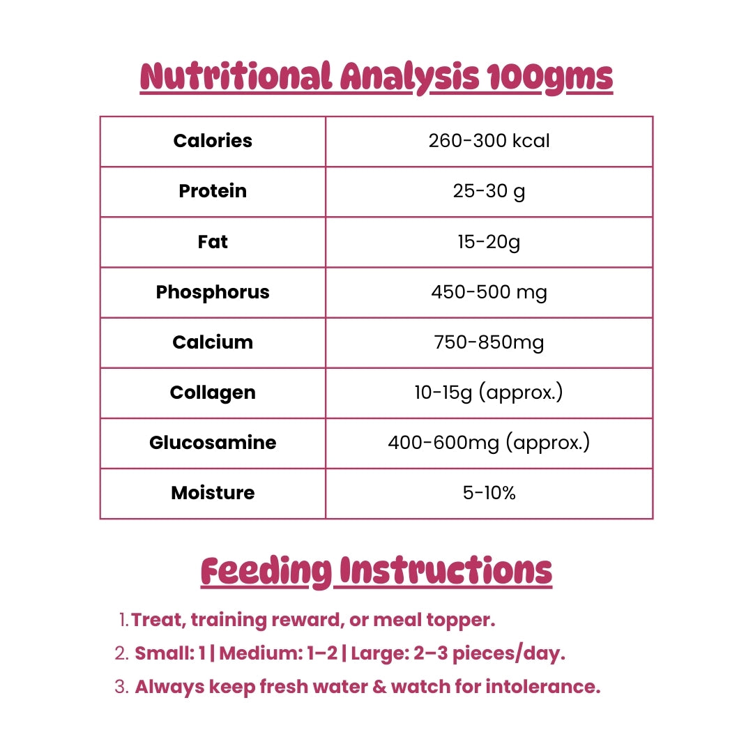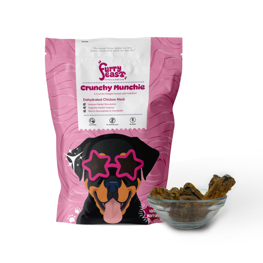 Crunchy chicken necks packed with natural calcium, phosphorus, and collagen, a tasty chew that strengthens bones and keeps teeth clean.
